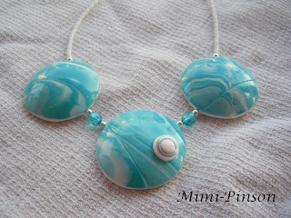 Eh bien oui, tout est dans le titre! Voilà ce que m'inspire la couleur de ces bijoux... J'ai voulu essayer le motif "Chevrons" (ou décoration du "Mille-Feuilles, les gourmands comprendront!),plus râté que réussi...et les lentilles...Bon, tout reste à revoir et à perfectionner mais cet essai me plait surtout le montage "lentilles" qui tient toujours bien à plat!Je sens que je ne vais pas en rester là!!!Gros bisous et mille mercis pour vos commentaires toujours précieux pour moi!
